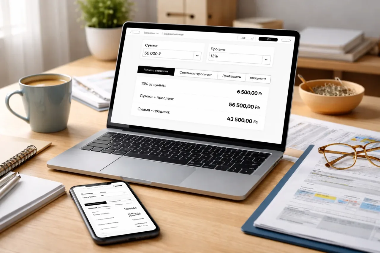 Одна из самых частых задач — понять, сколько составит определенный процент от заданной суммы. Именно поэтому запросы процент от суммы калькулятор и калькулятор процента от суммы остаются одними из самых востребованных. Пользователь хочет быстро ввести число, указать процент и сразу увидеть итог.