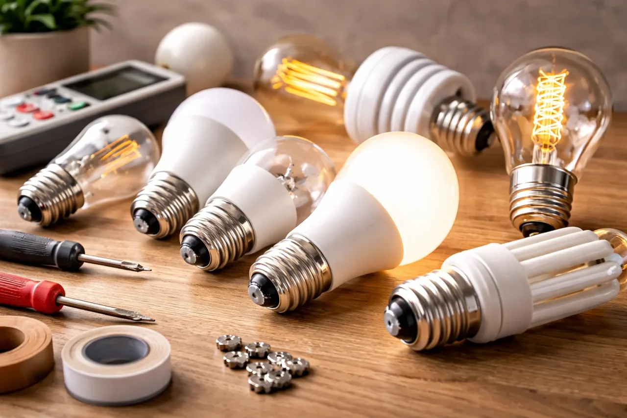 Правильный выбор начинается с самого светильника. Нужно понять, сколько места внутри плафона, нужен ли тёплый или нейтральный свет, будет ли использоваться диммер, насколько ярким должен быть поток и нет ли ограничений по мощности. После этого уже выбирают конкретную лампу. Такой порядок намного надёжнее, чем покупка «на глаз» по привычному цоколю.