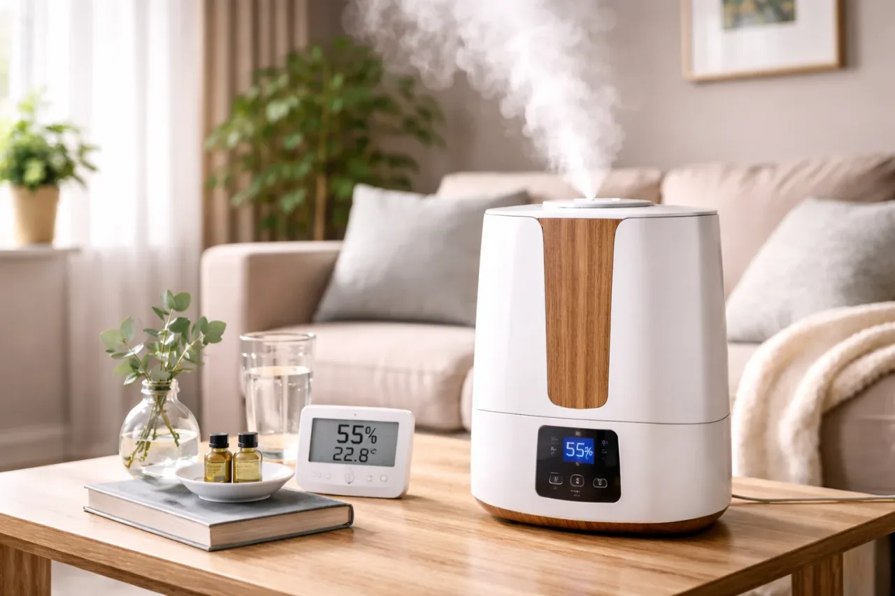 Увлажнитель нужен не ради самого факта повышения влажности, а ради более комфортного микроклимата. В нормальных условиях человеку легче дышать, меньше чувствуется сухость слизистых, спокойнее переносится отопительный сезон, а пыль в помещении ведет себя менее агрессивно. Это особенно актуально для квартир, где окна часто закрыты, радиаторы греют сильно, а естественная влажность держится ниже комфортного уровня.