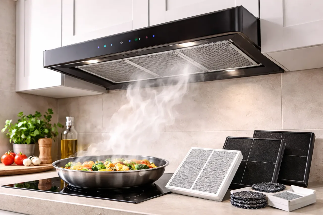 Второй момент — регулярные расходы. Угольные фильтры не вечные. Если ими не заниматься, эффективность падает довольно быстро: вытяжка шумит, мотор работает, а запахи остаются. Поэтому покупать такую технику и забывать про обслуживание нельзя.